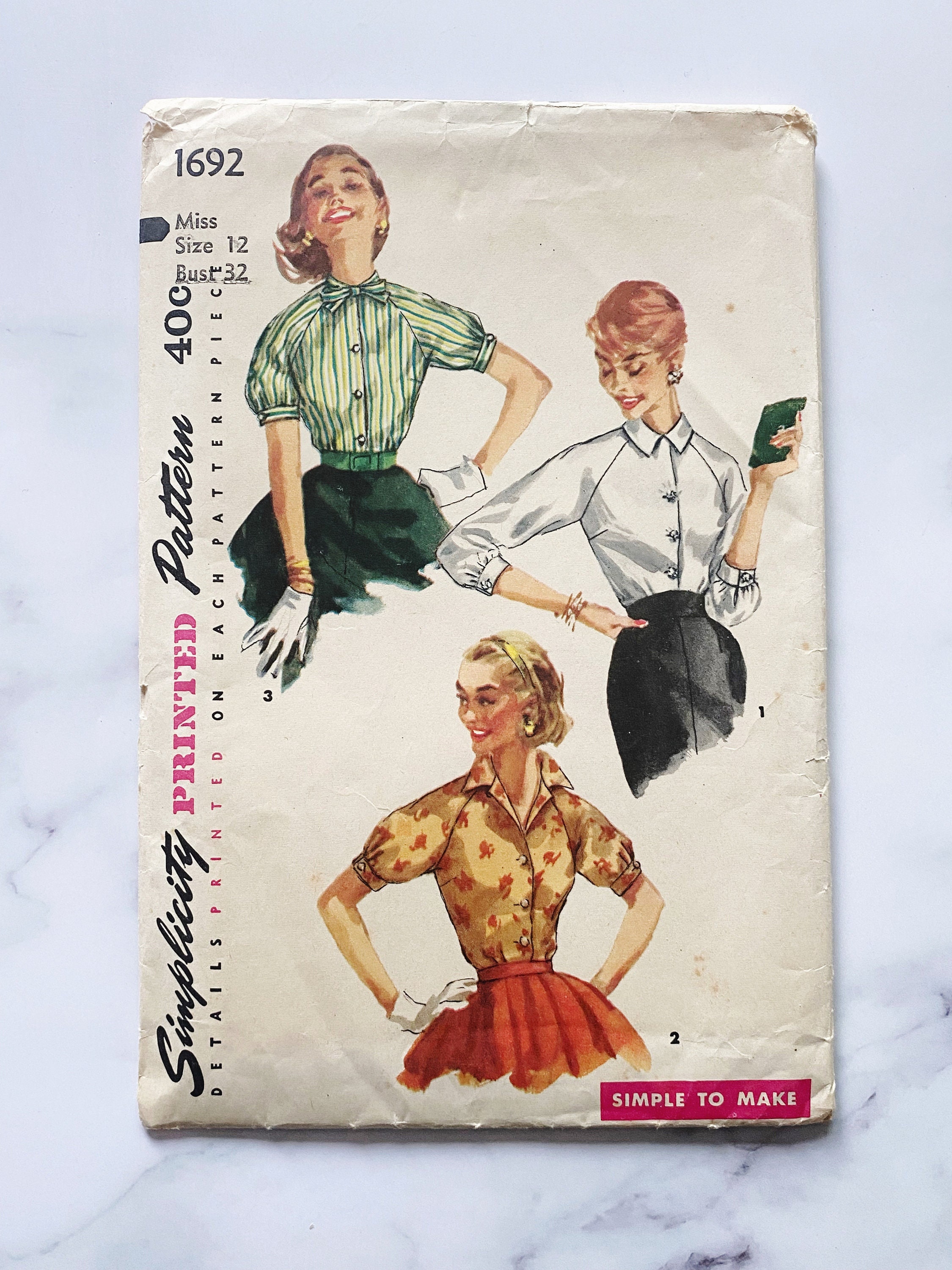 50s Simplicity 1692 32 Bust Uncut Ff Raglan Puff Sleeve Elbow Etsy