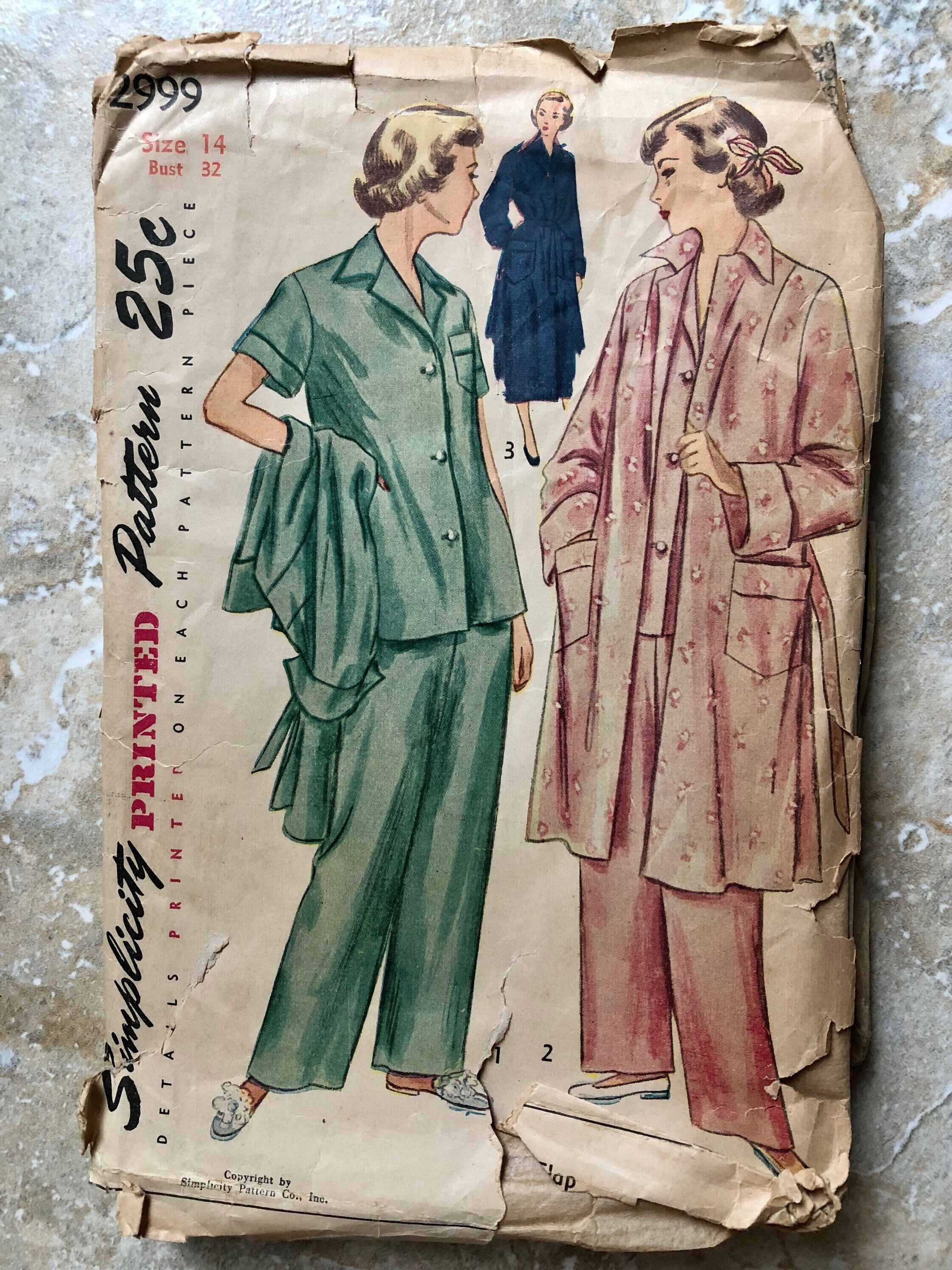 Simplicity 2999 Bust 32 Pajamas And Robe Vintage 1940s Etsy